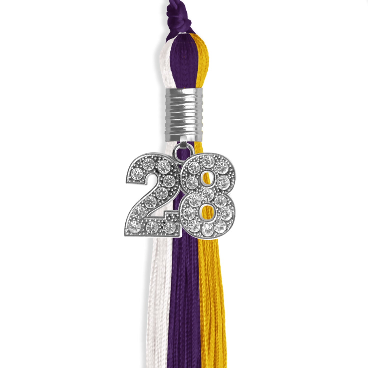 Purple/Gold/White Graduation Tassel with Silver Date Drop