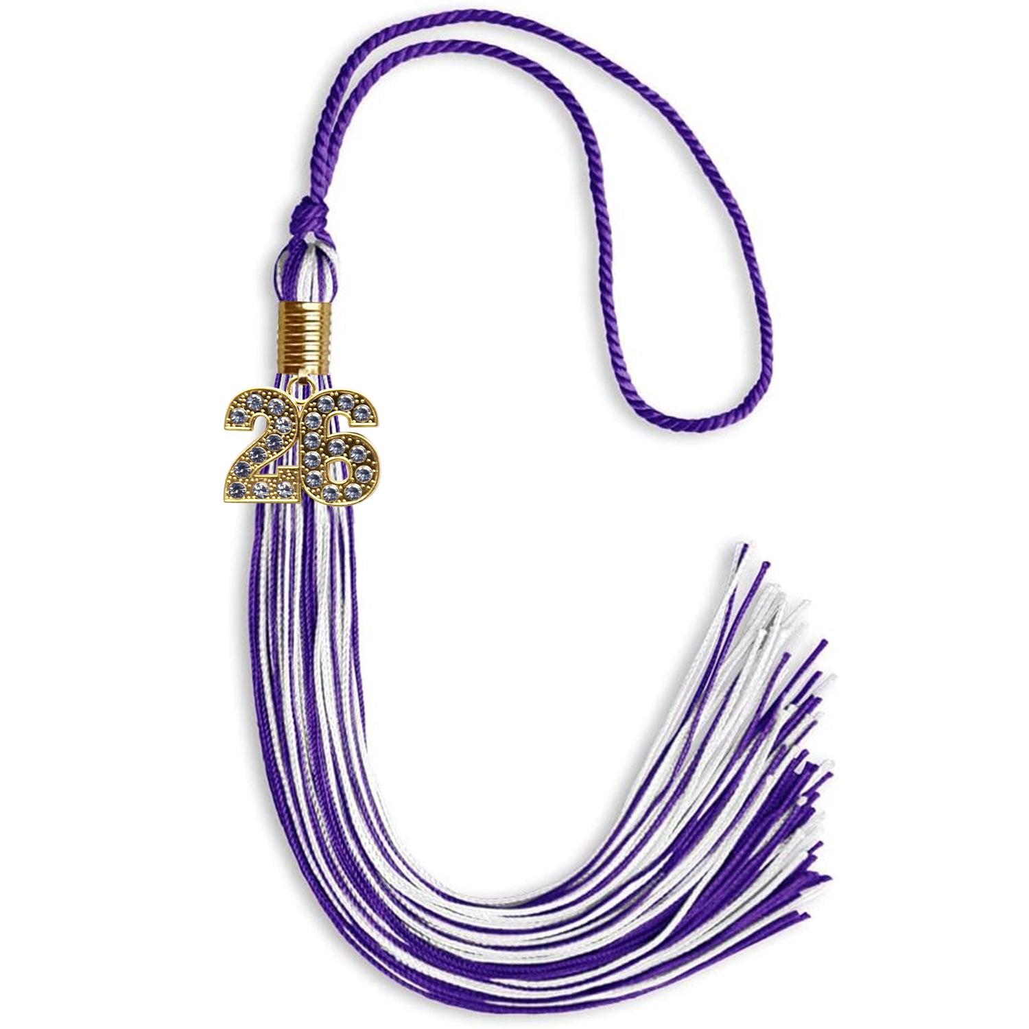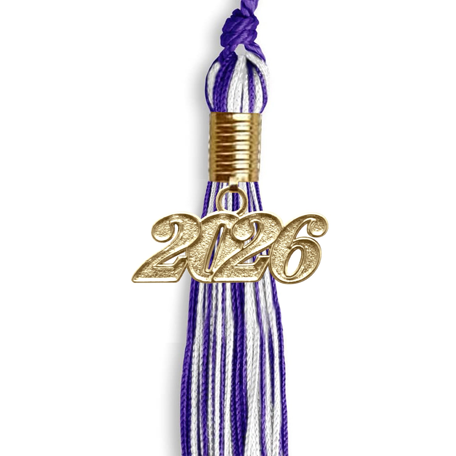 Purple/White Mixed Color Graduation Tassel with Gold Date Drop