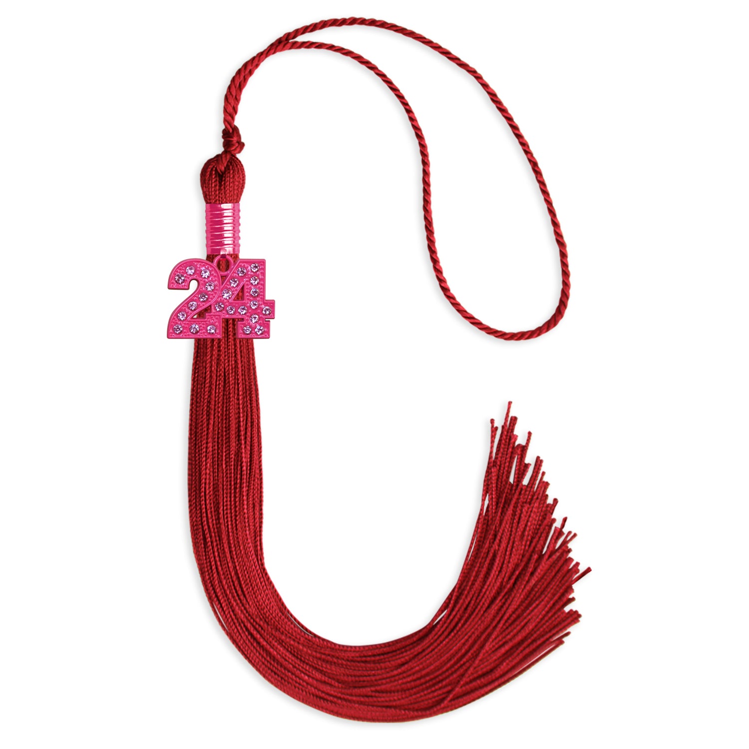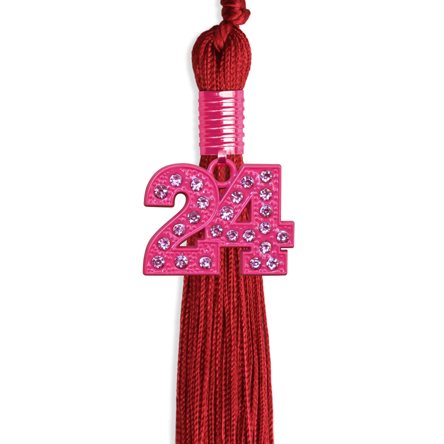 Celebrate your graduation in style with this Single Color Tassel with Pink Blink Charm. Perfect for those who want to add a bit of sparkle and elegance to their ceremony, this tassel combines a rich pink color with a stunning pink bling charm that catches the light beautifully. The durable, high-quality threads ensure a long-lasting, vibrant appearance. Measuring 9 inches in length with a 6 1/2" hang loop, it offers a perfect fit and easy attachment to your cap. Whether you're graduating from high school or college, this tassel is sure to be a memorable accessory that enhances your special day and makes for perfect photo opportunities.