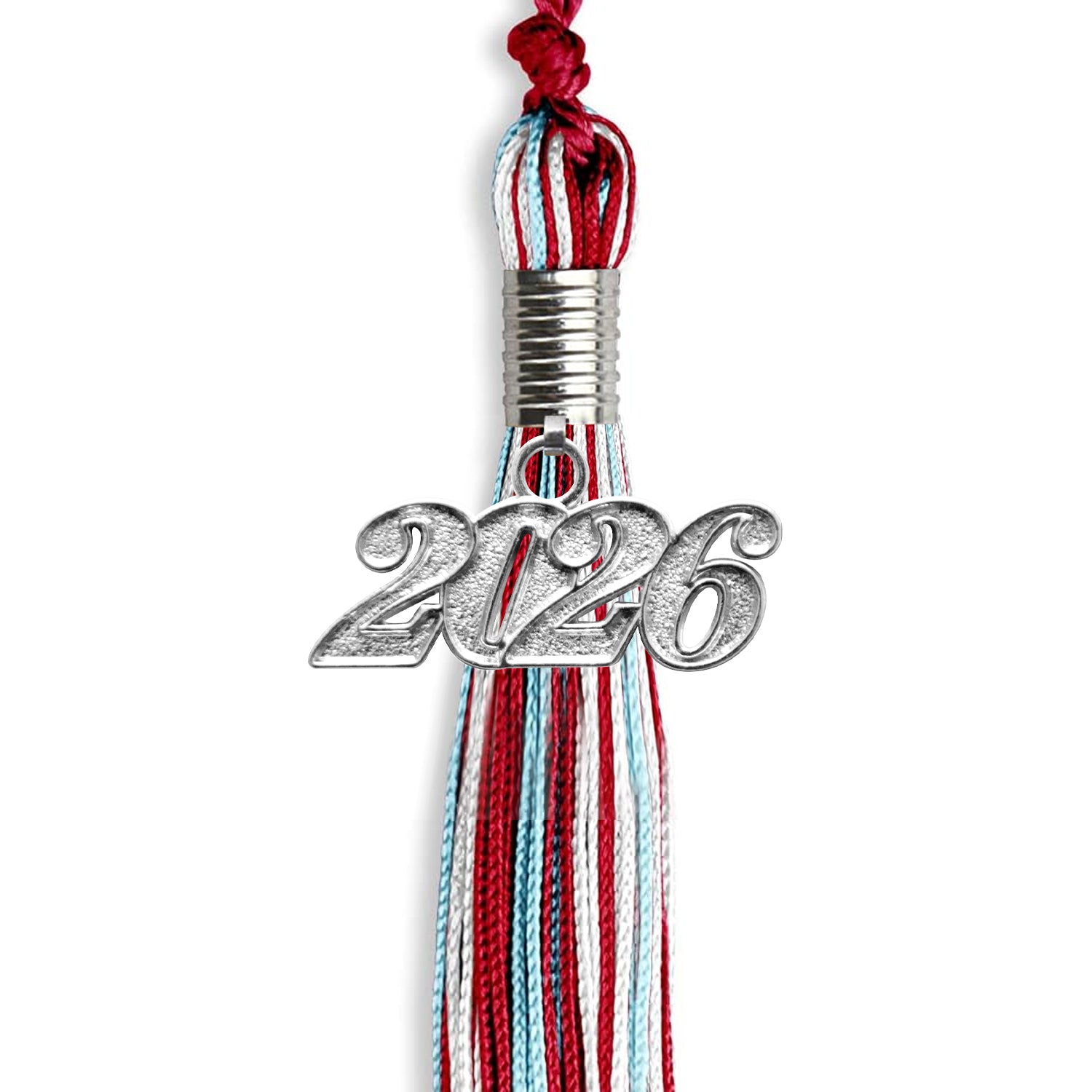Red/Light Blue/White Mixed Color Graduation Tassel with Silver Date Drop