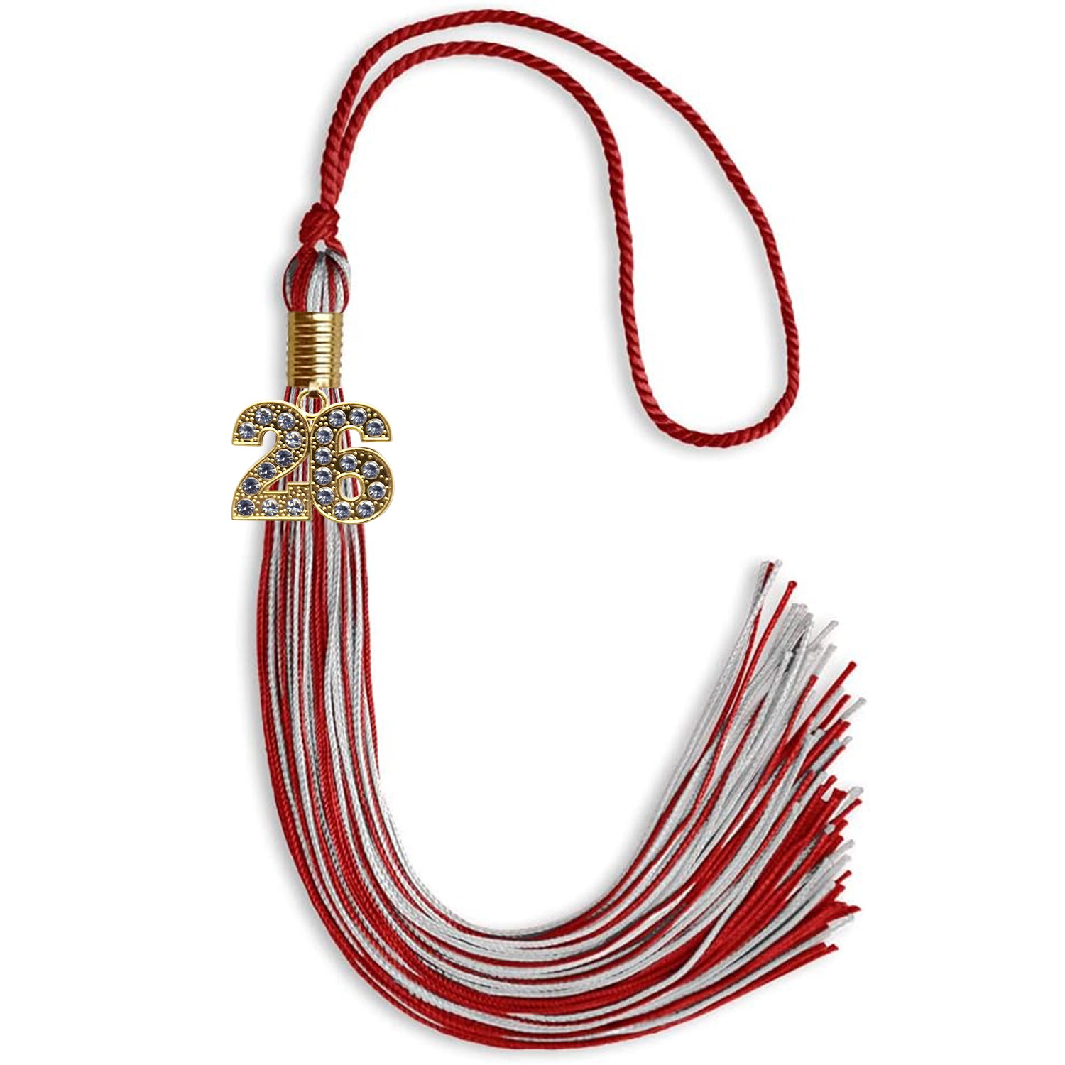 Red/Silver Mixed Color Graduation Tassel with Gold Date Drop