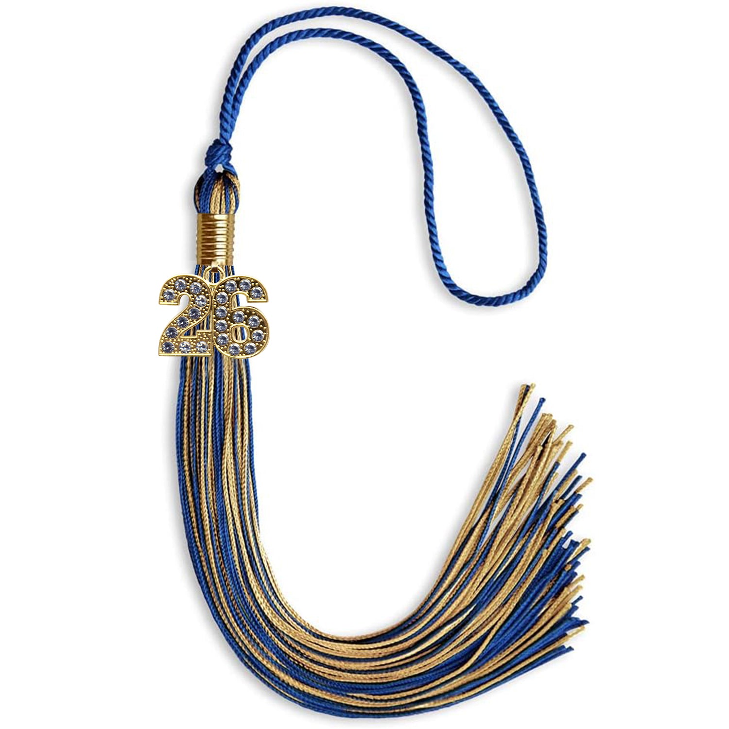 Royal Blue/Antique Gold Mixed Color Graduation Tassel with Gold Date Drop