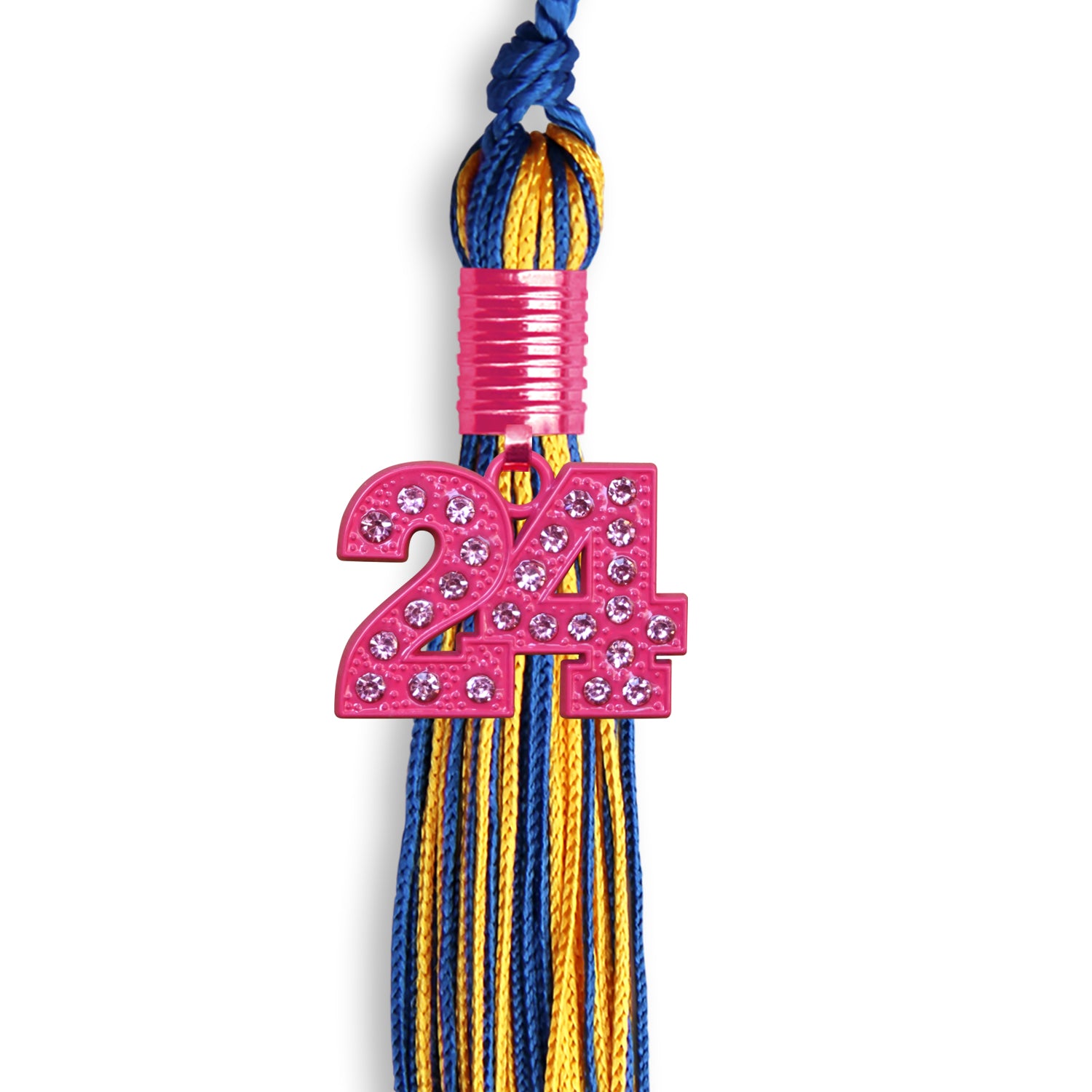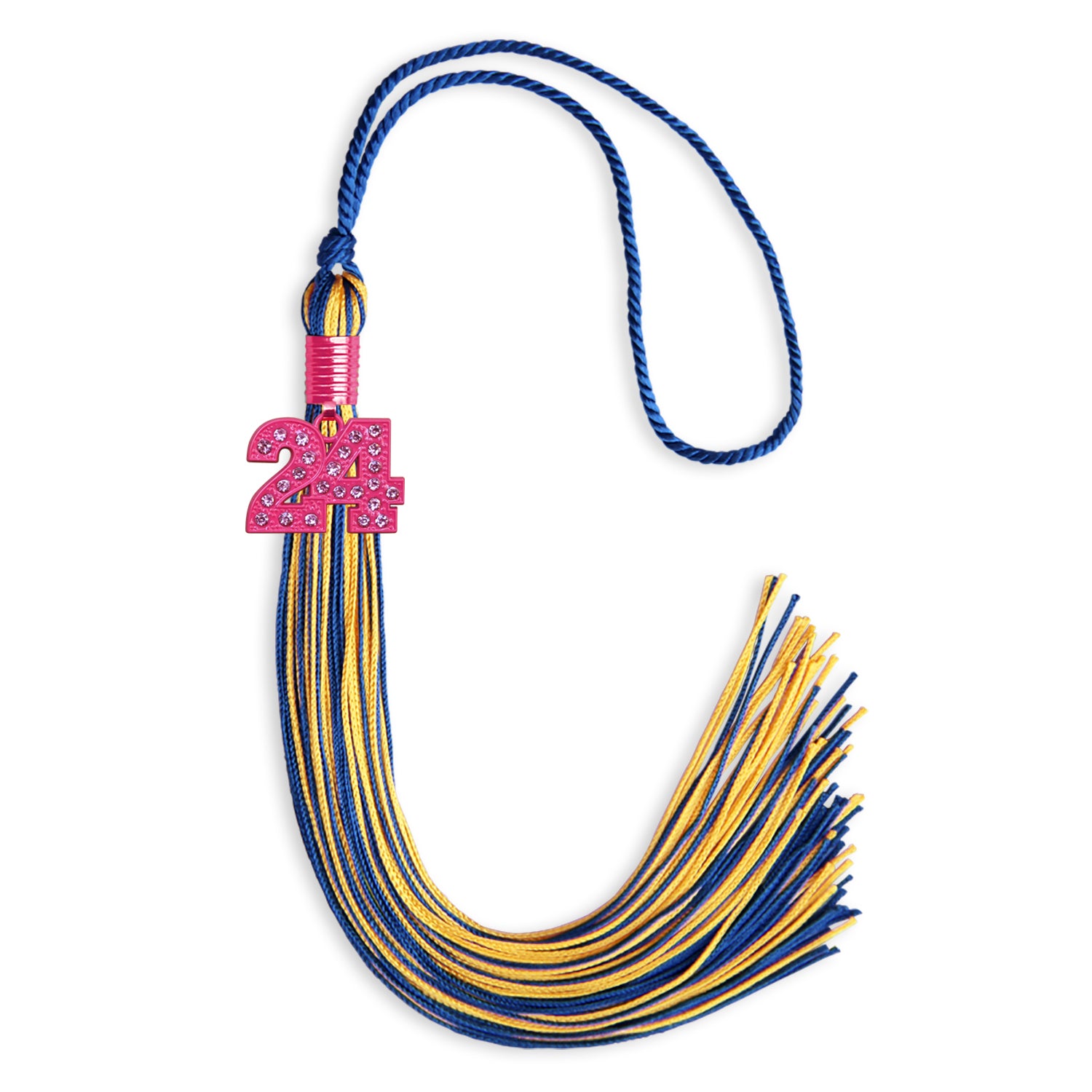 Royal Blue/Gold Mixed Color Graduation Tassel with Pink Bling Charm