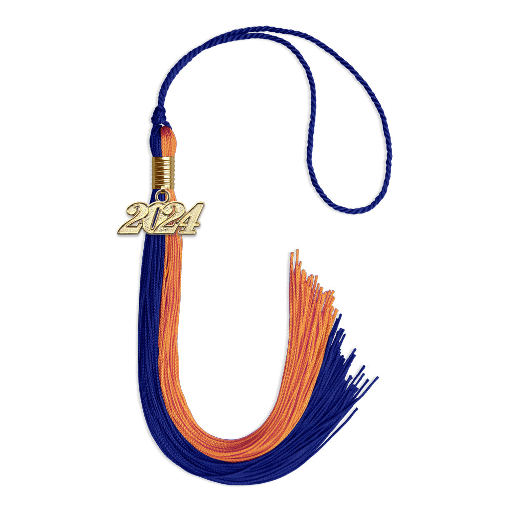 Royal Blue/Orange Graduation Tassel with Gold Date Drop