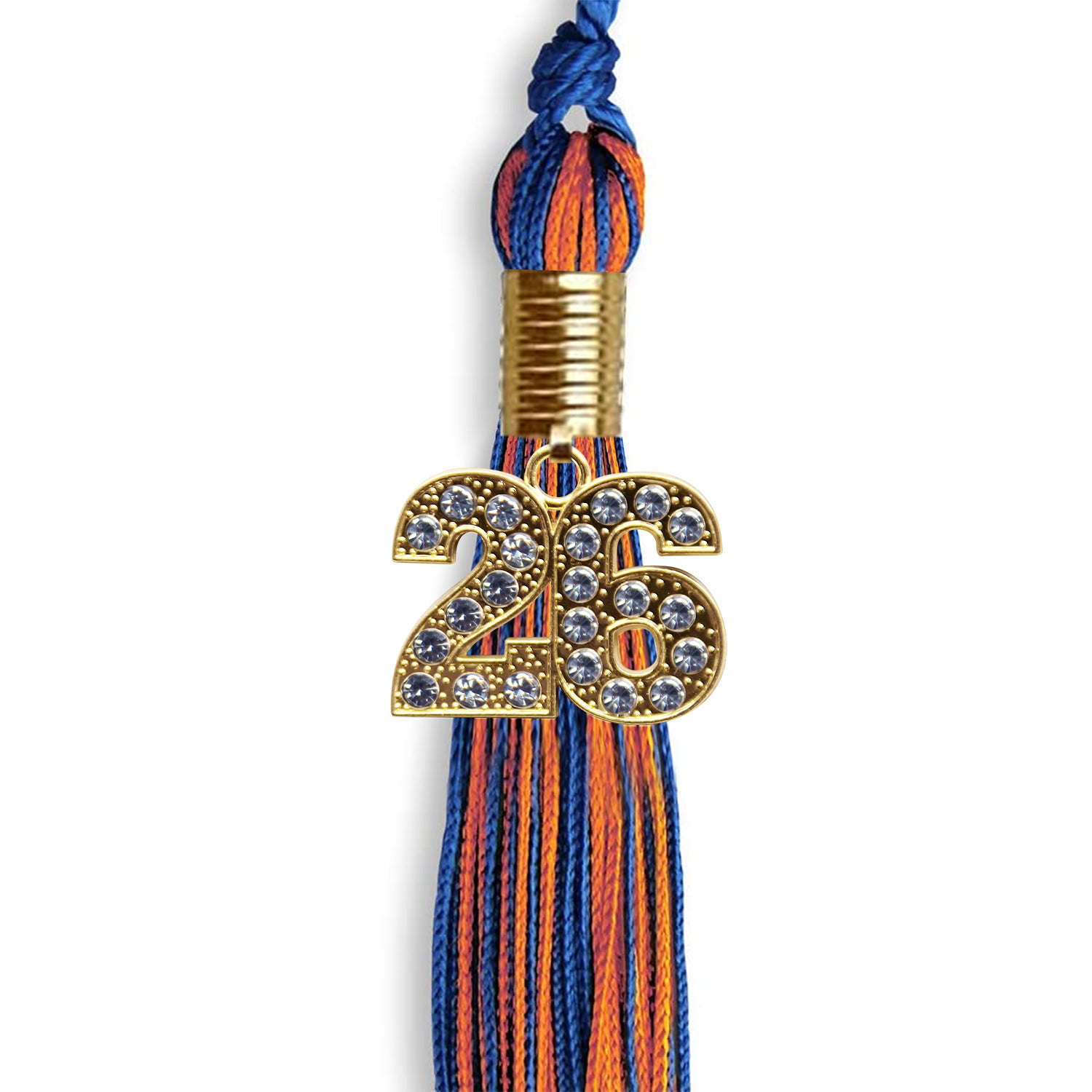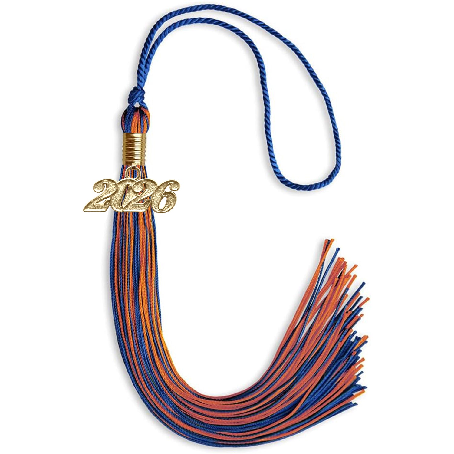 Royal Blue/Orange Mixed Color Graduation Tassel with Gold Date Drop