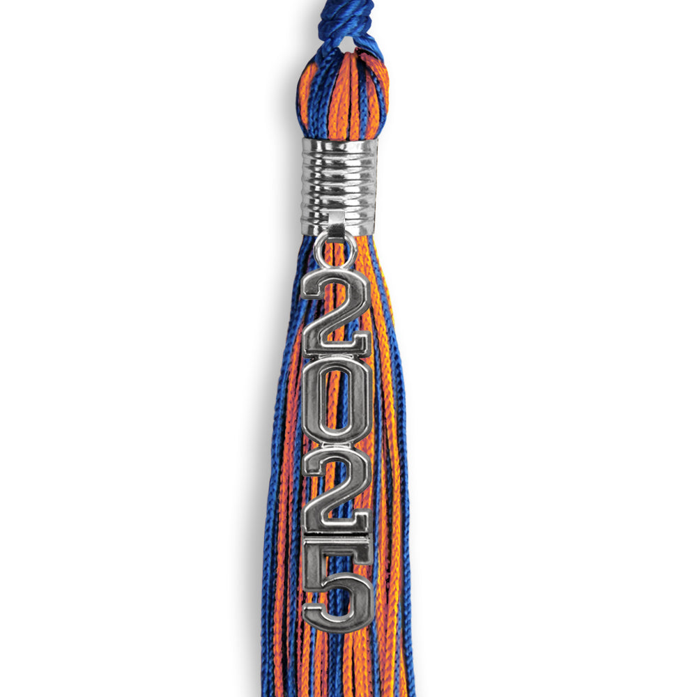 Royal Blue/Orange Mixed Color Graduation Tassel with Stacked Silver Date Drop