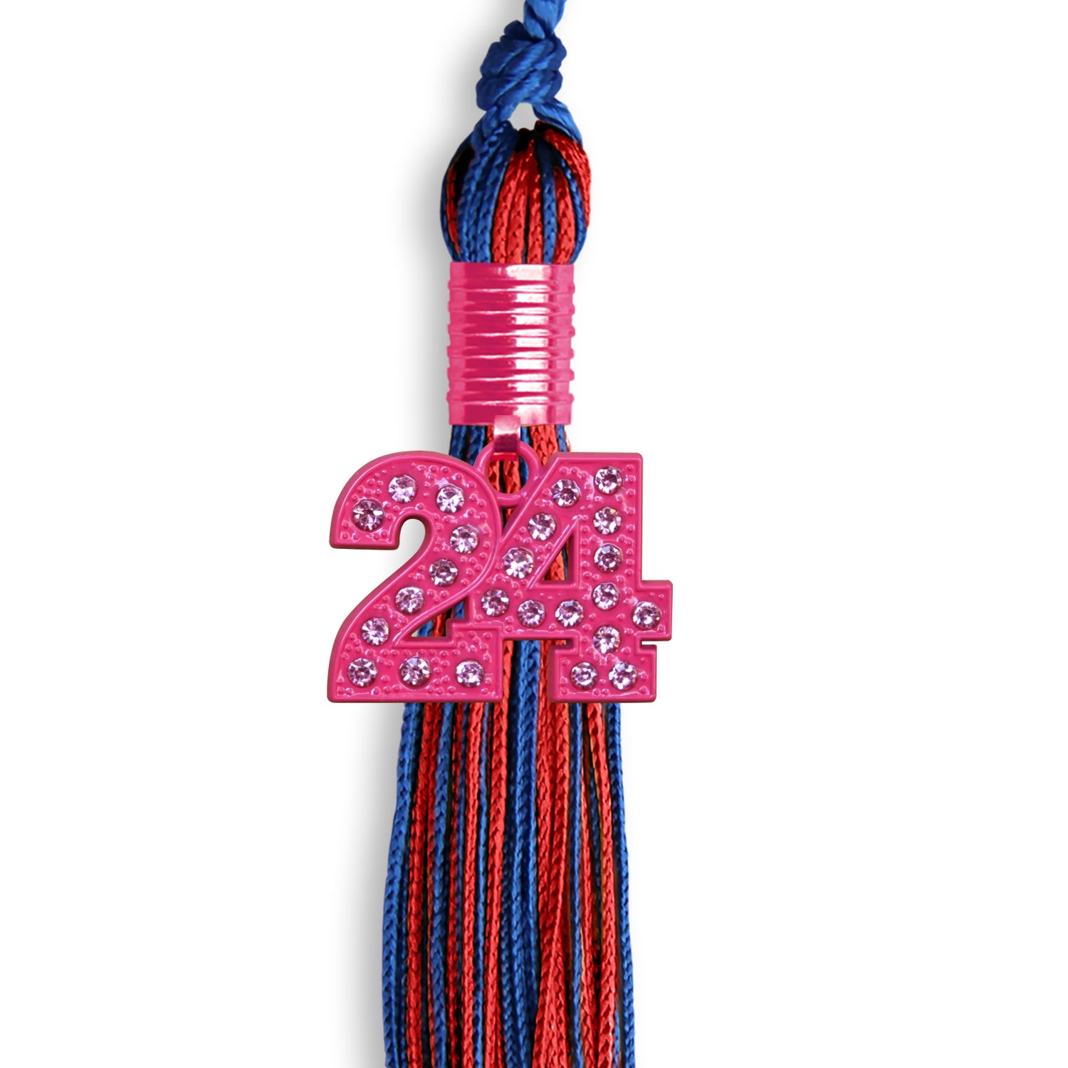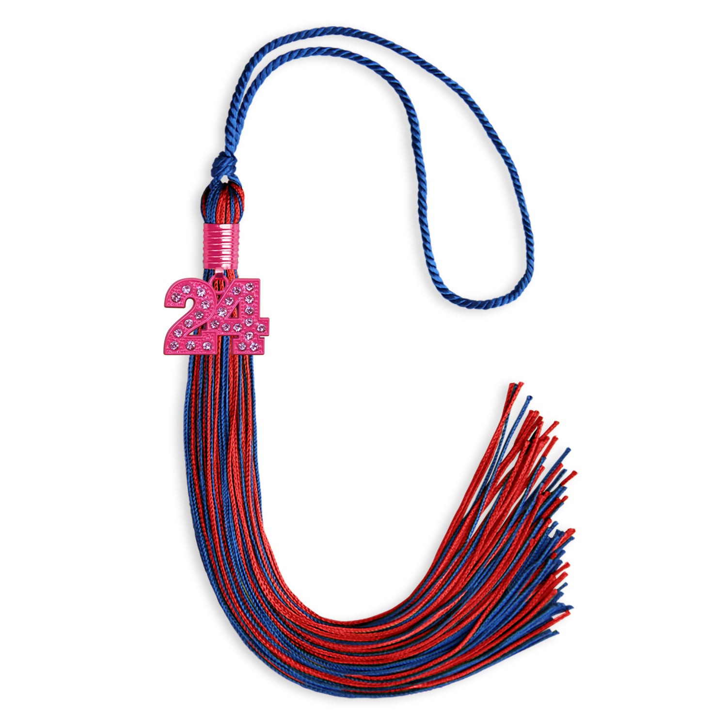 Royal Blue/Red Mixed Color Graduation Tassel with Pink Bling Charm