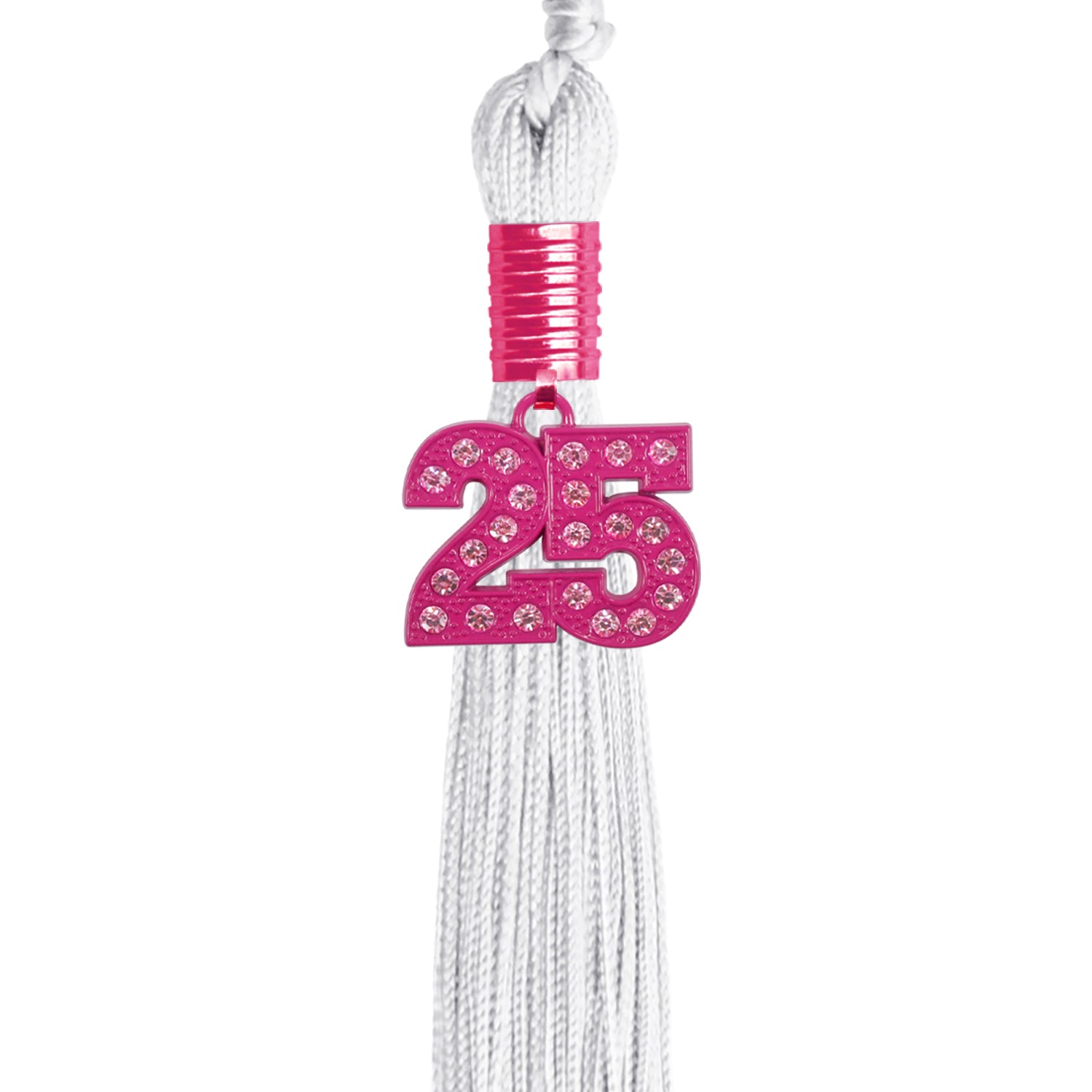 Celebrate your graduation in style with this Single Color Tassel with Pink Blink Charm. Perfect for those who want to add a bit of sparkle and elegance to their ceremony, this tassel combines a rich pink color with a stunning pink bling charm that catches the light beautifully. The durable, high-quality threads ensure a long-lasting, vibrant appearance. Measuring 9 inches in length with a 6 1/2" hang loop, it offers a perfect fit and easy attachment to your cap. Whether you're graduating from high school or college, this tassel is sure to be a memorable accessory that enhances your special day and makes for perfect photo opportunities.
