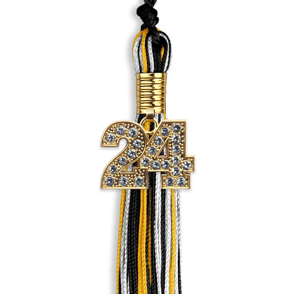 Black/Gold/White Mixed Color Graduation Tassel with Gold Date Drop