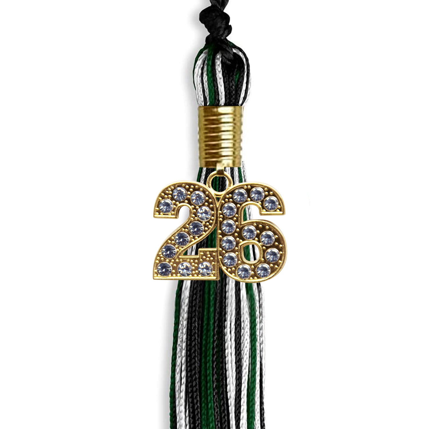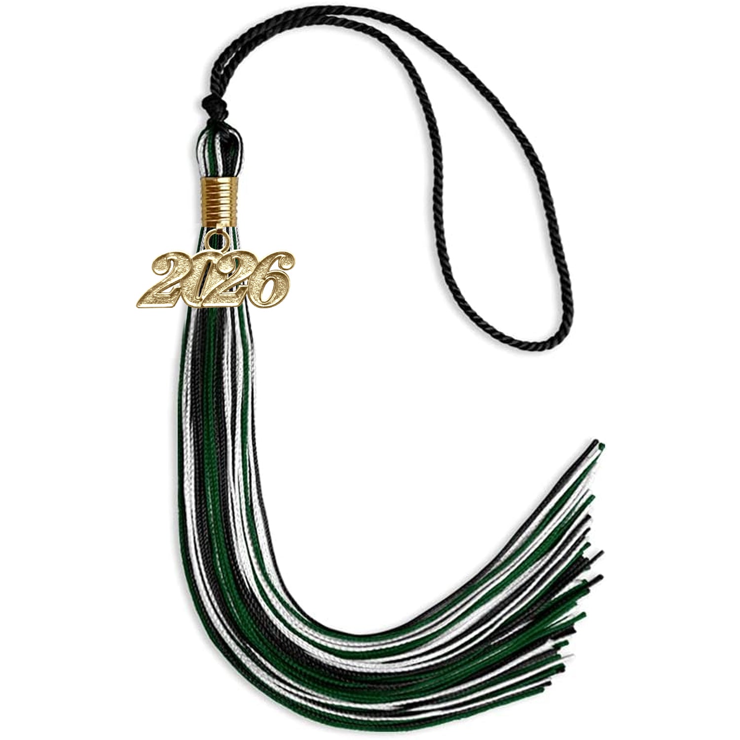 Black/Hunter Green/White Mixed Color Graduation Tassel with Gold Date Drop