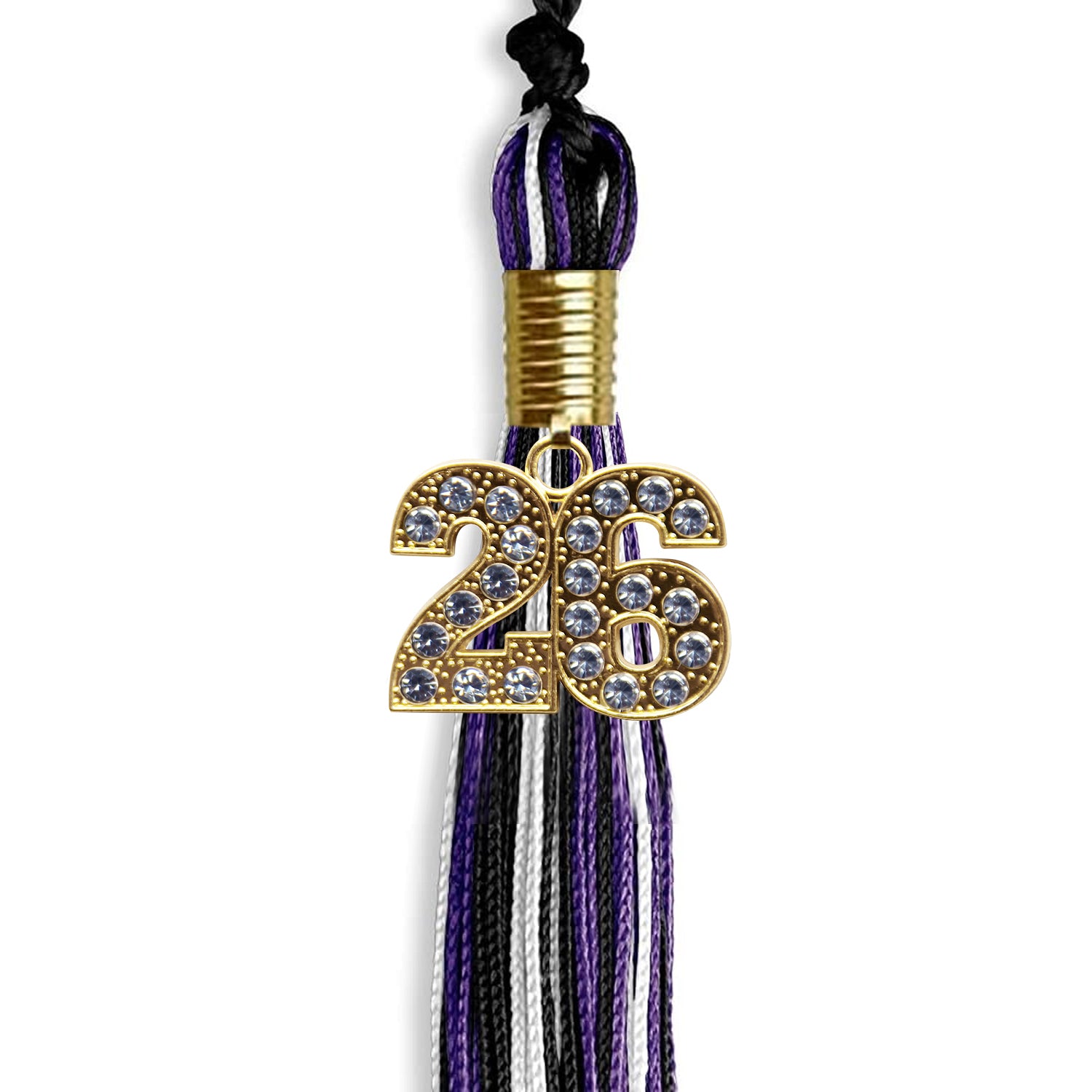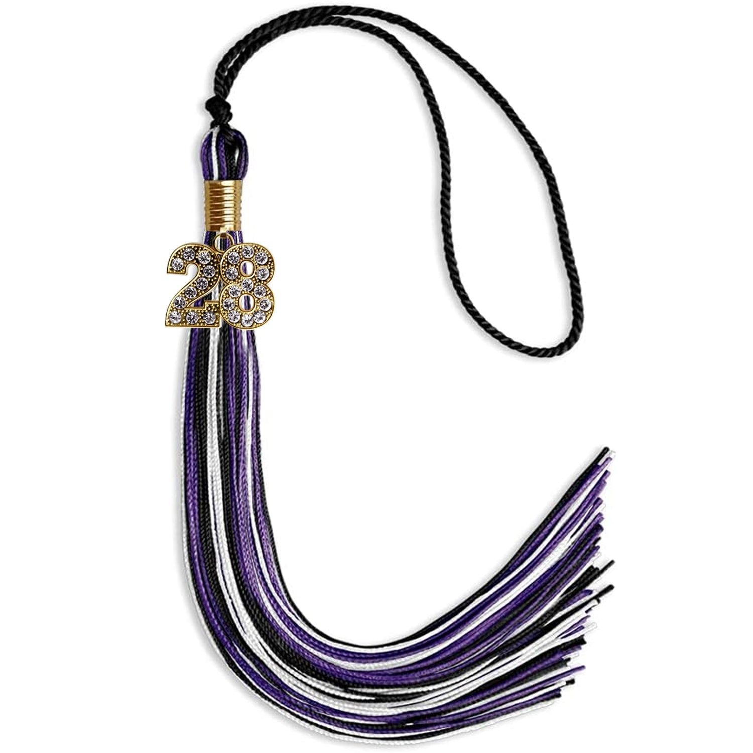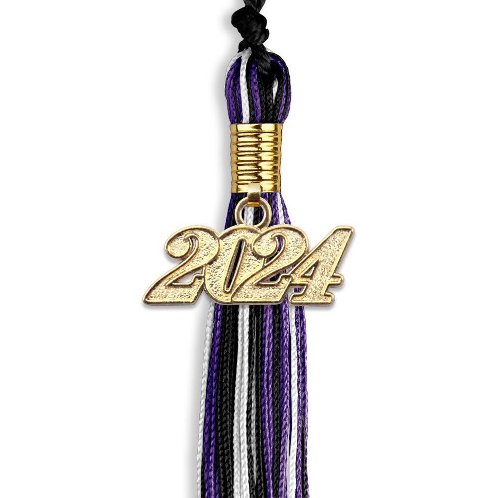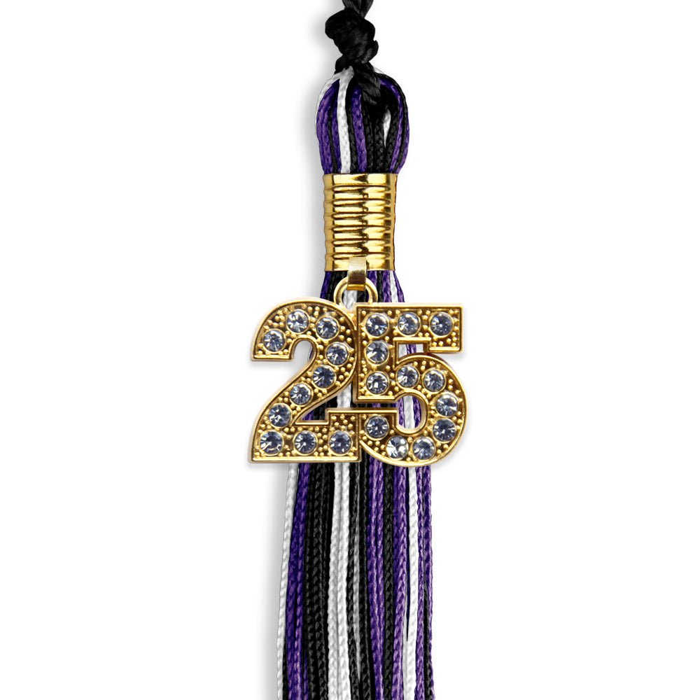 Black/Purple/White Mixed Color Graduation Tassel with Gold Date Drop