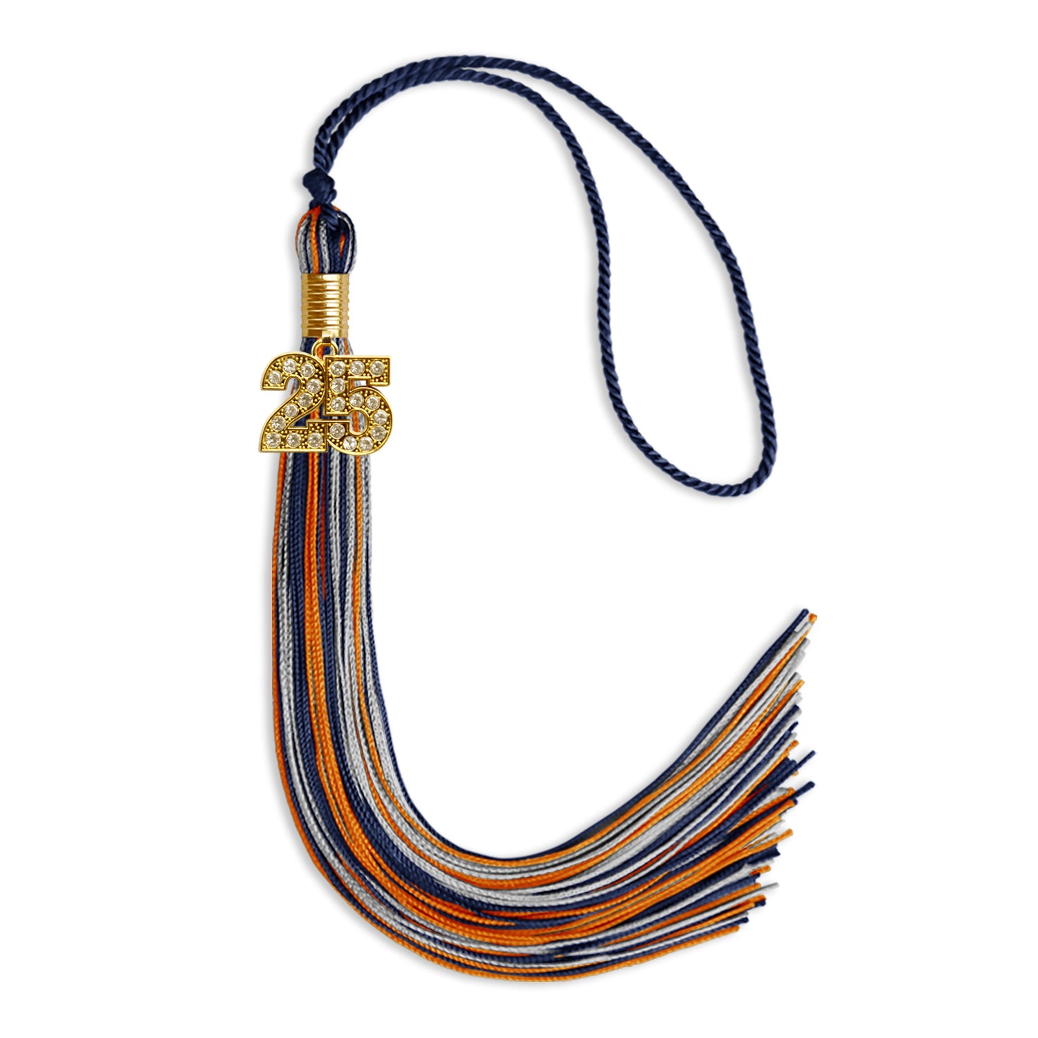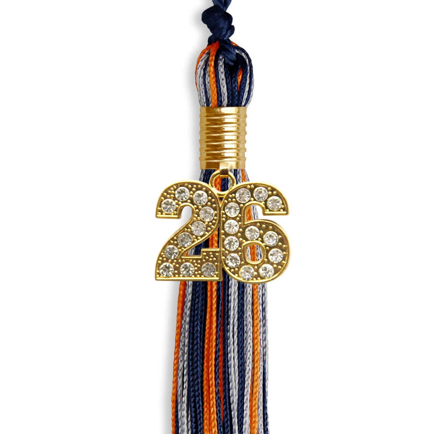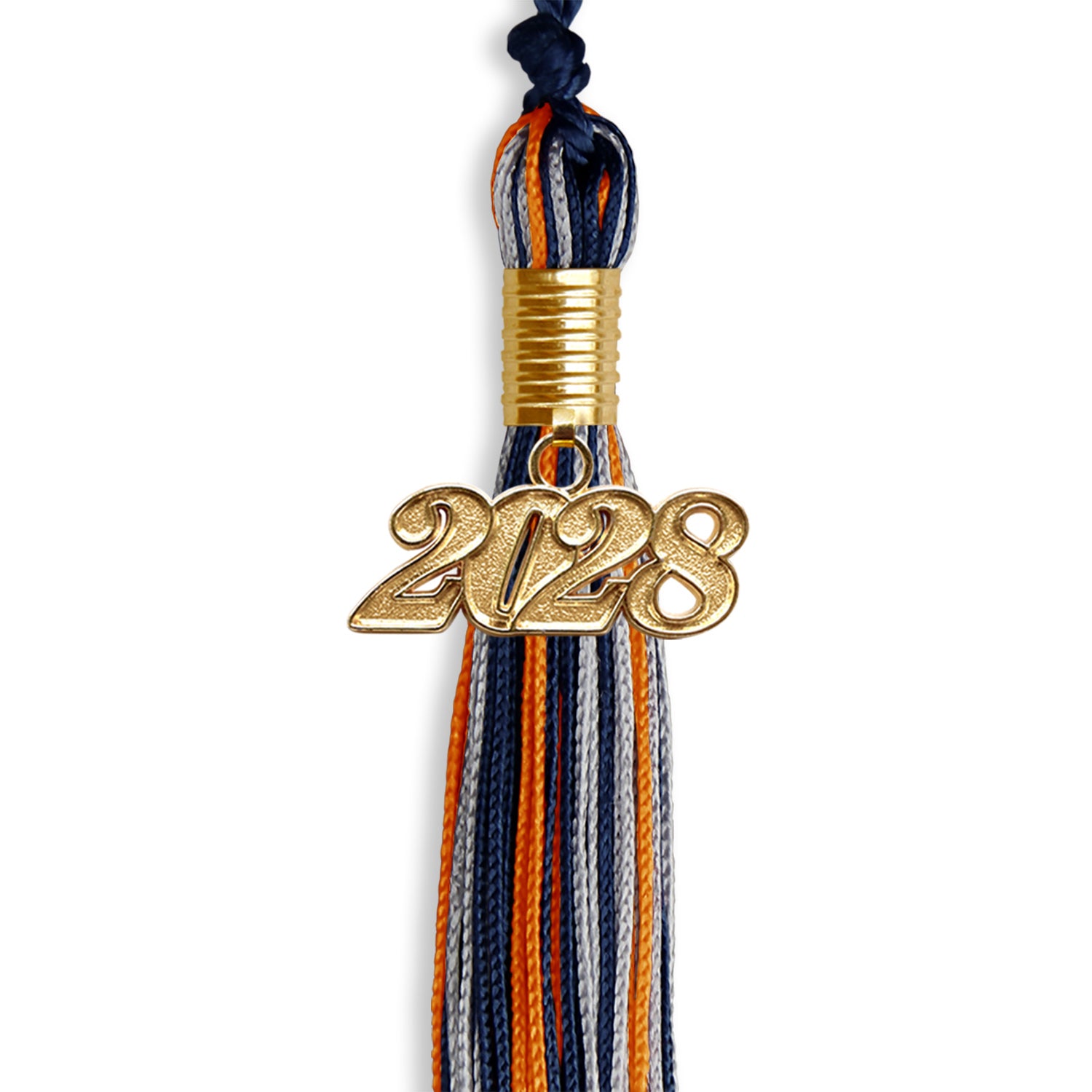 Navy Blue/Orange/Silver Mixed Color Graduation Tassel with Gold Date Drop