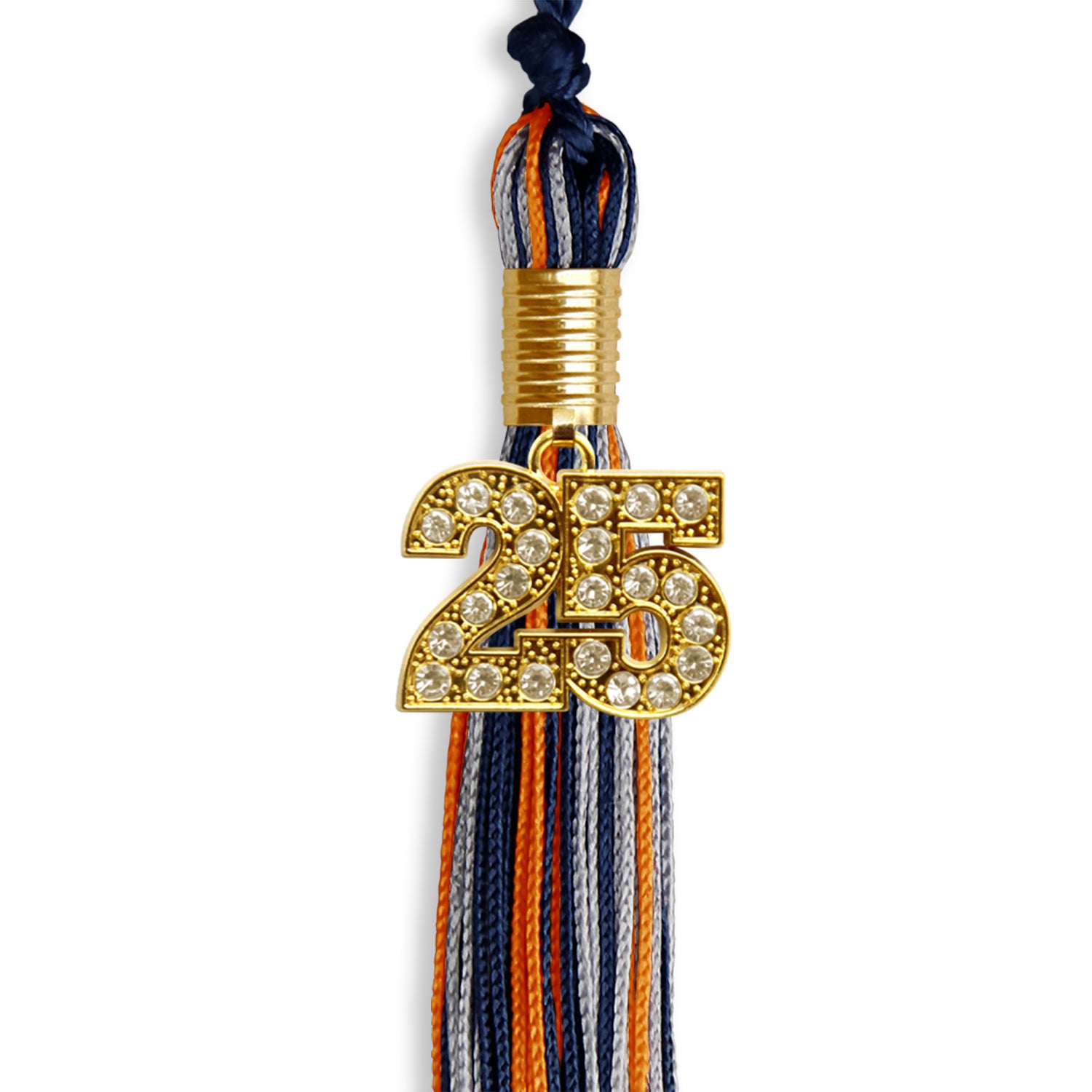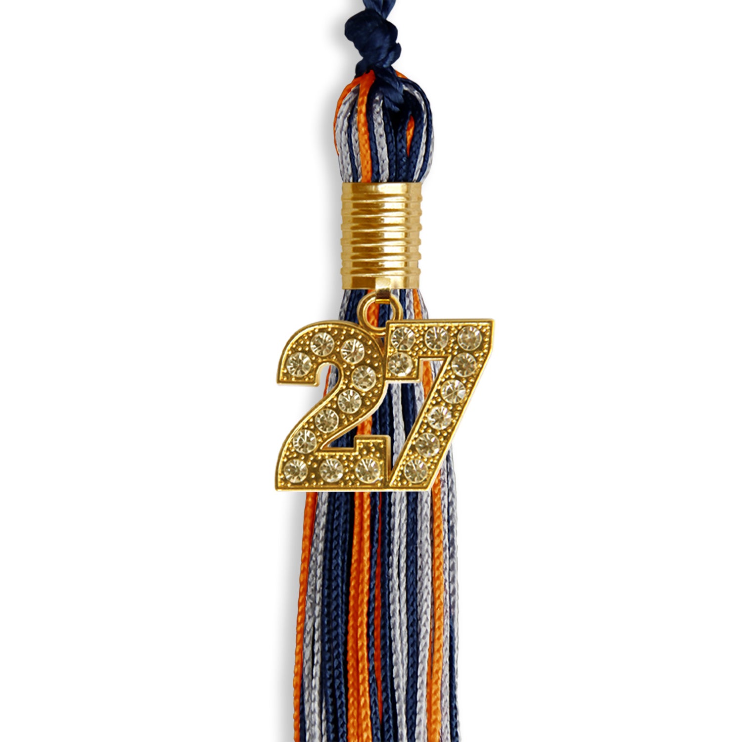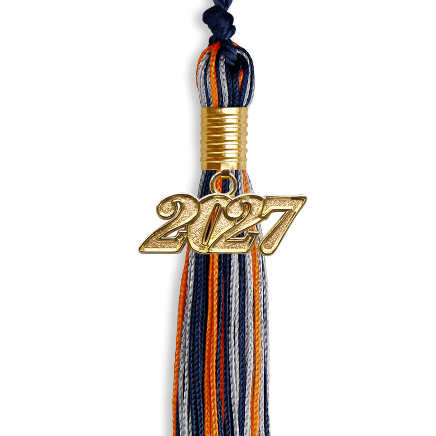 Navy Blue/Orange/Silver Mixed Color Graduation Tassel with Gold Date Drop