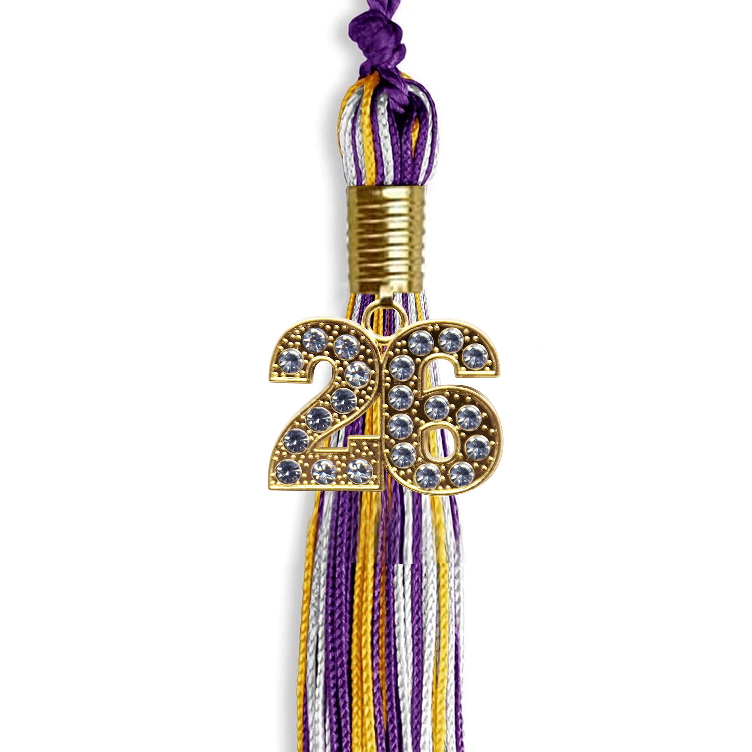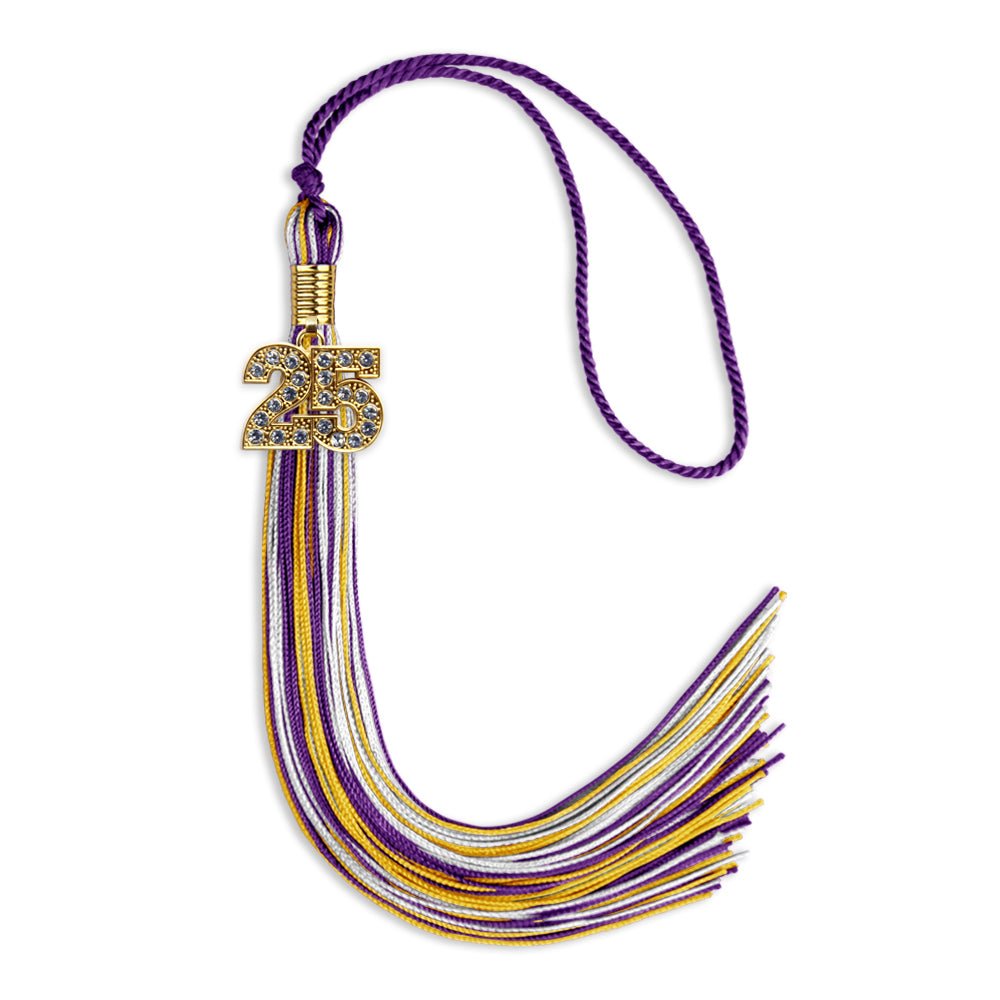 Purple/Gold/White Mixed Color Graduation Tassel with Gold Date Drop