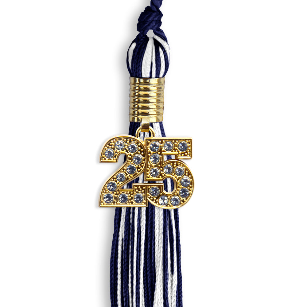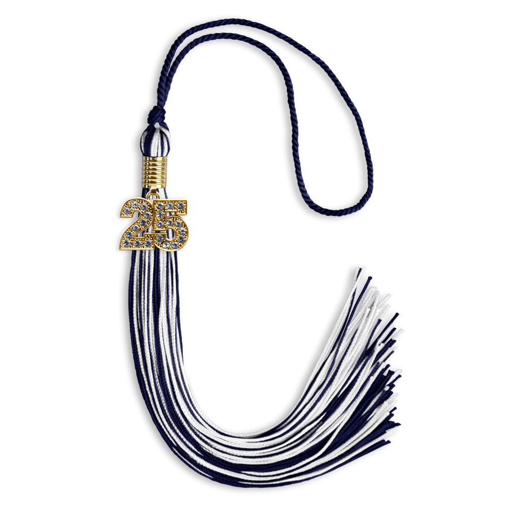 Navy Blue/White Mixed Color Graduation Tassel with Gold Date Drop
