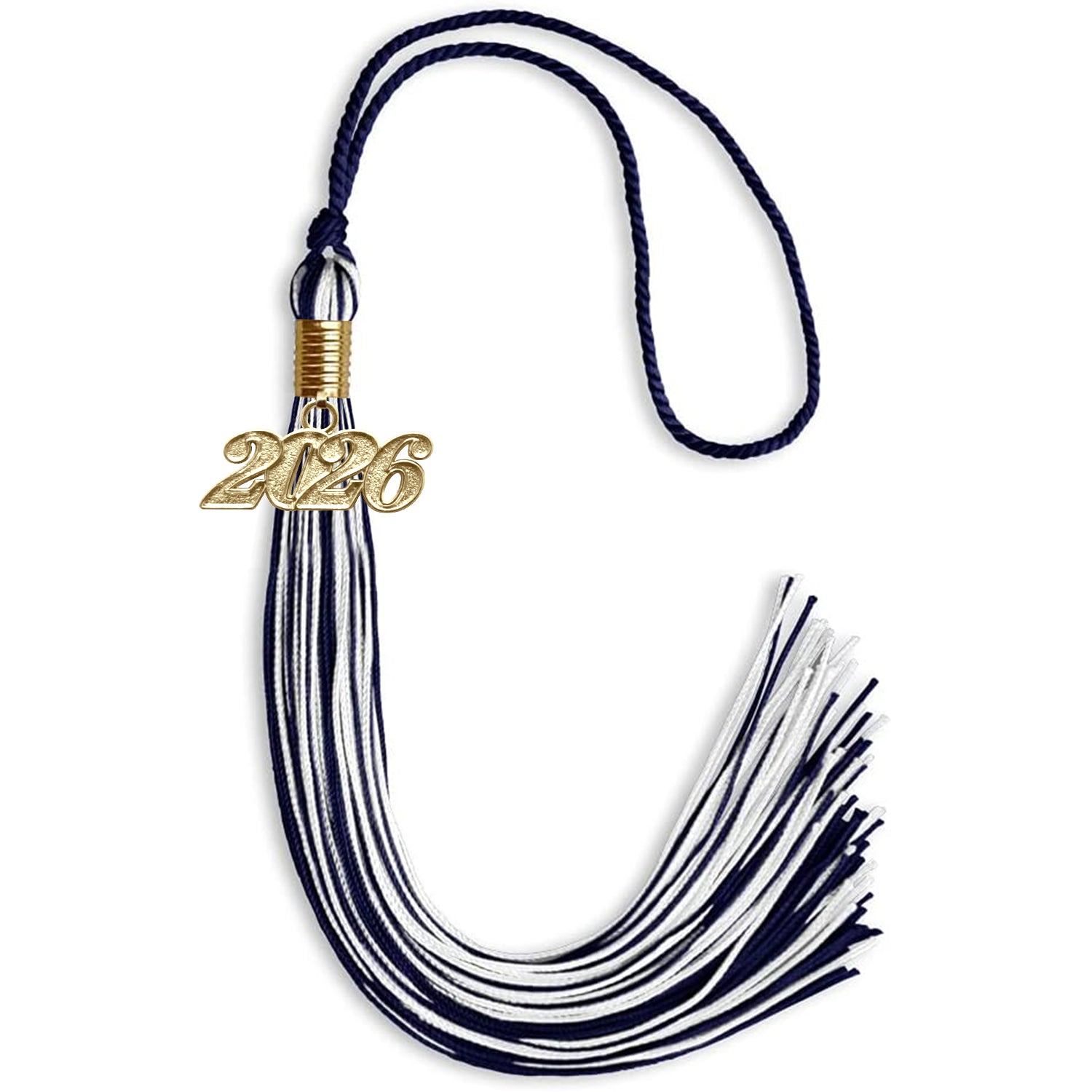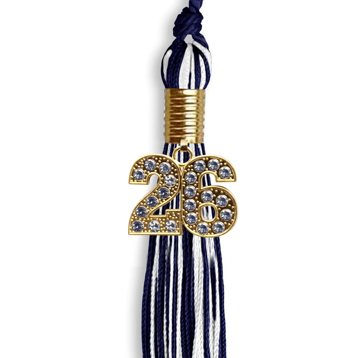 Mixed Double Color Tassel with Gold Date Drop (Navy Blue/White)