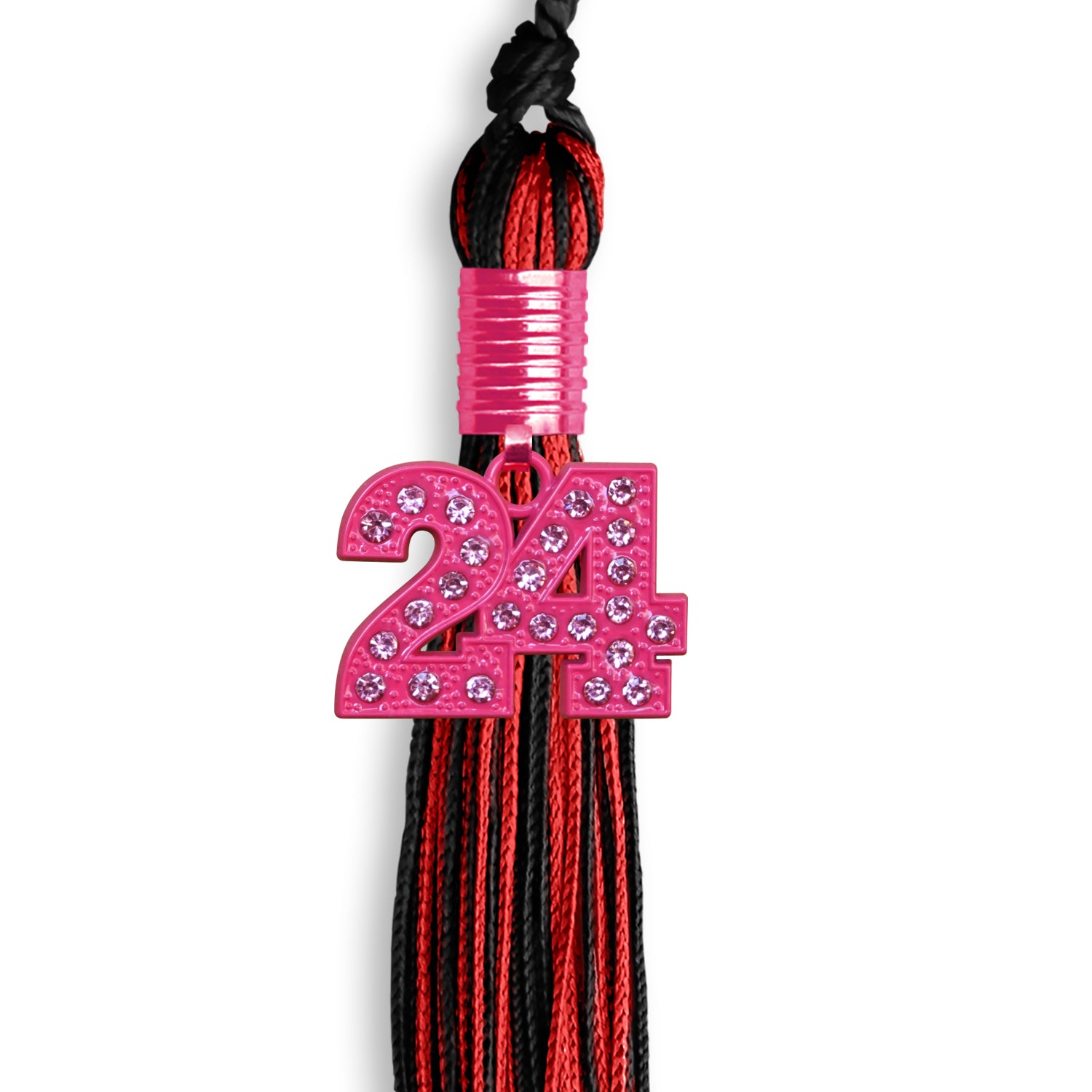 Black/Red Mixed Color Graduation Tassel with Pink Bling Charm