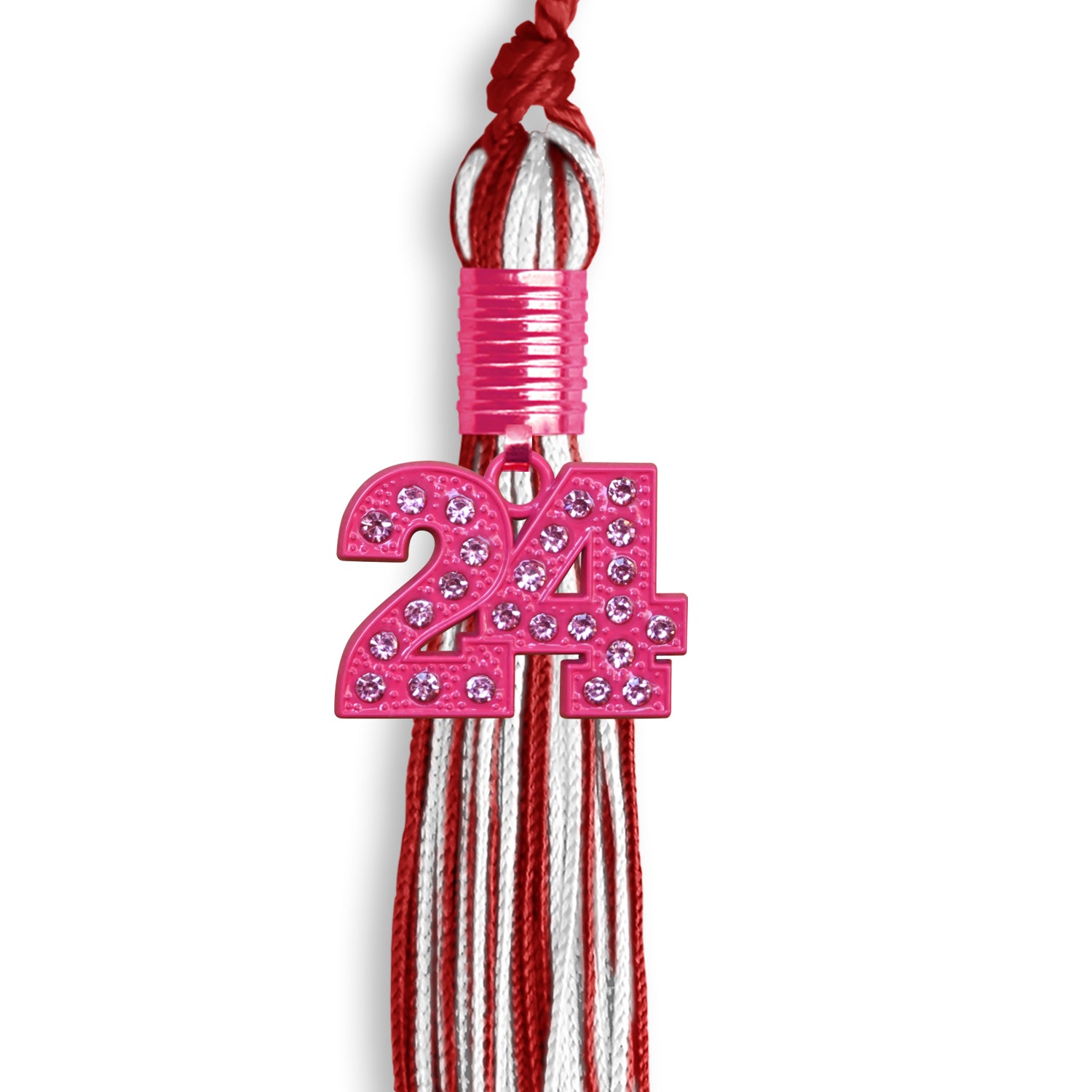 Red/White Mixed Color Graduation Tassel with Pink Bling Charm