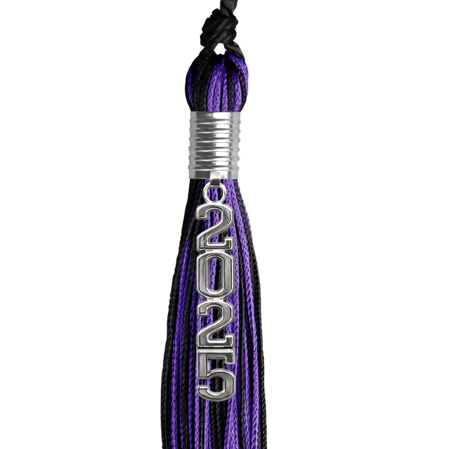 Black/Purple Mixed Color Graduation Tassel with Stacked Silver Date Drop